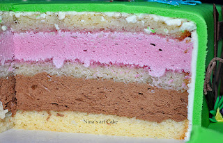 Blat insiropat, mousse de cioco cu alune si mousse de fructe de padure.